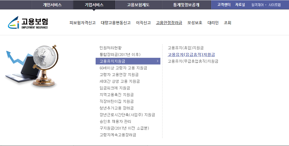 고용보험 홈페이지 ▶ 기업 서비스 ▶고용안정장려금 ▶ 고용유지지원금