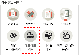 밀물/썰물에 대한 정보를 쉽게 빠르게 파악하실 수 있는데요