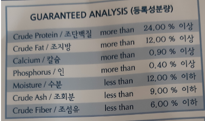 *사료 선택시 좋은 성분을 보시기 바랍니다.