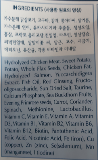 *좋은 사료성분 표시예 입니다.(chicken Meat)