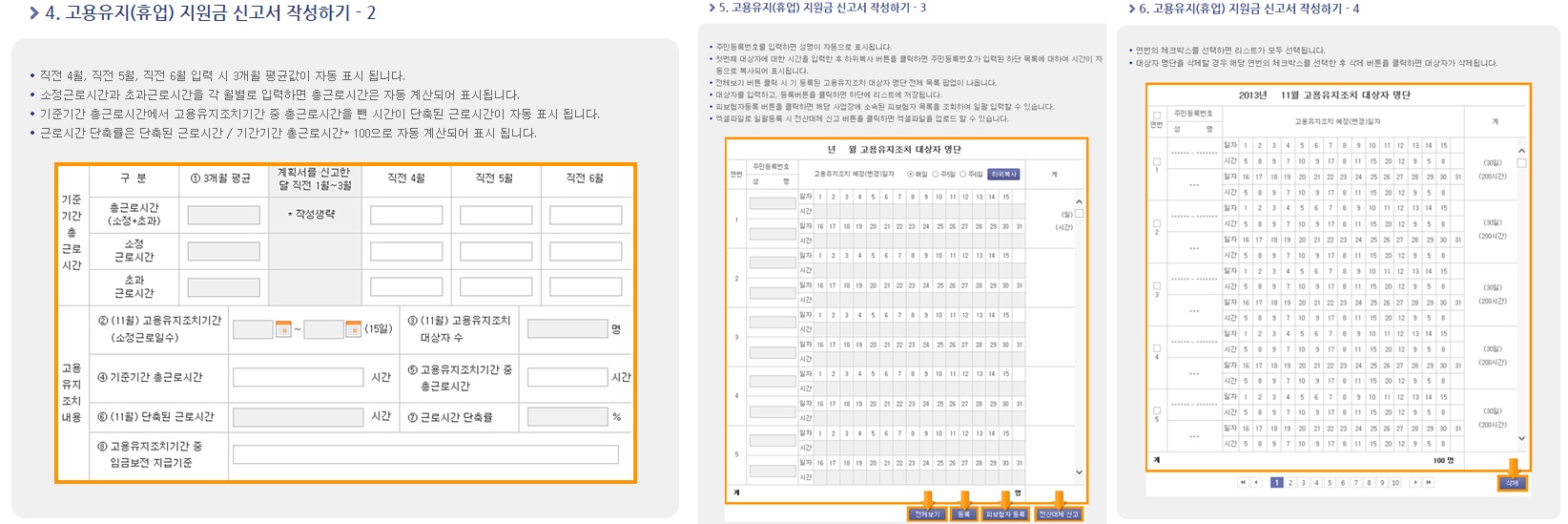 ②고용유지 지원금 신고서 작성 2,3,4