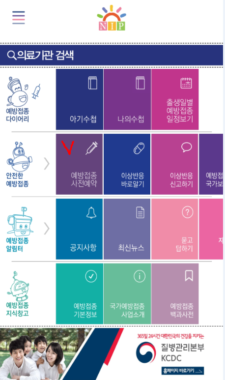 예방접종 도우미 누리집 사이트 사전예약 방법