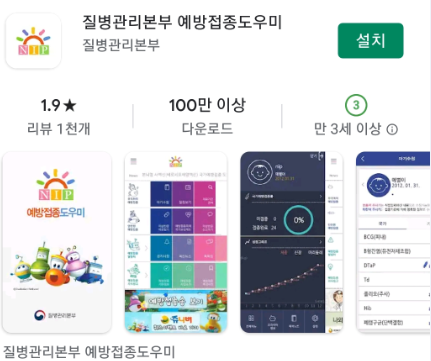 구글 플레이--질병관리본부 예방접종 도우미 설치