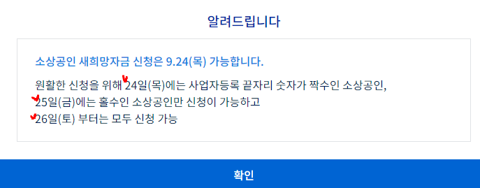 *25일(금) 신청 사업자: 사업자등록 끝자리 숫자 홀수이신 사업자.