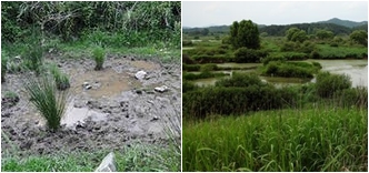 습지의 흙 속 등에 널리 분포합니다.