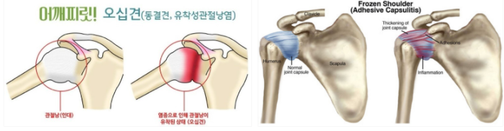 오십견은 유착성 관절낭염이라고 불리며 어깨