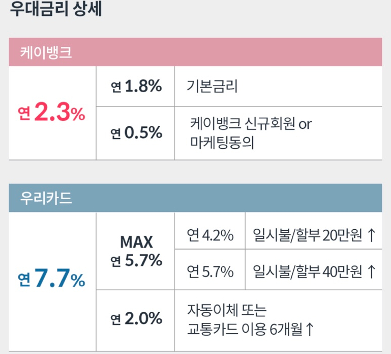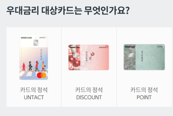 * 우대금리 대상 카드가 따로 있으니 확인하시기 바랍니다.